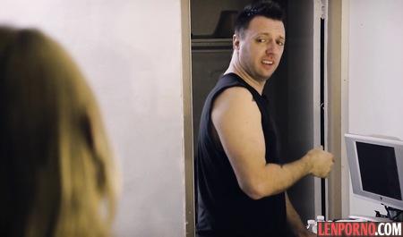 Крутой мужичок симпатичной киски Ханны Хэйс не знает чем бы себя занять в субботний день, а потому пьёт холодное пивко. Но и алкогольные напитки не сильно вставляют амбала, а потому он спешит заставить любовницу делать горловой минет а после и трахаться в домашних условиях к обоюдному удовольствию. Впрочем мужичок то кайф получает, а вот молодухе похоже нужно что-то понежнее…